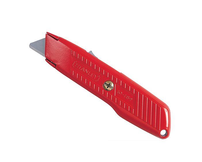 The Stanley 10-189 Springback safety knife has a red high visibility body which is ribbed to provide a firm grip.